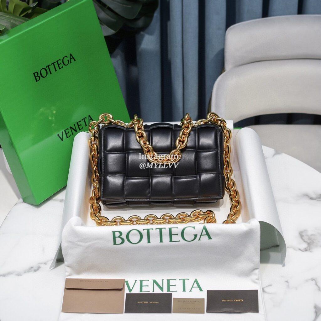 Top Quality Version:MYLLVV » Bottega Veneta Weave Lambskin Shoulder Bag Black With Gold 6688-1