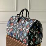 Made from Monogram Eclipse canvas with the Monogram Blossoms and LVs treated like graffiti, the classic Keepall Bandoulière 50 travel bag be...