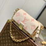 The Favorite handbag is fashioned from embossed Monogram Empreinte leather, with a pink Monogram motif printed on a cream-color background. ...