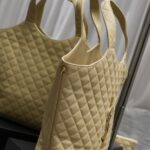YSL Lambskin Leather Icare Handle Bag Beige With Gold Hardware 698651
