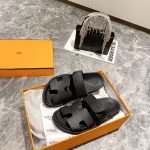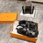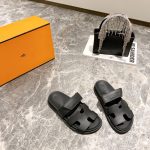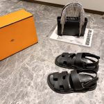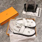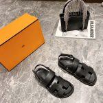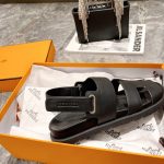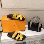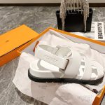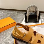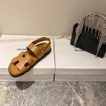Hermes 2021 spring and summer new Velcro leather slippers (Brown)