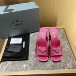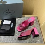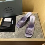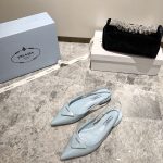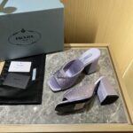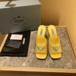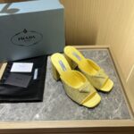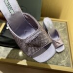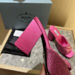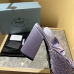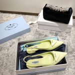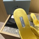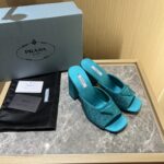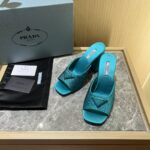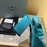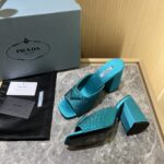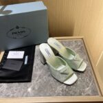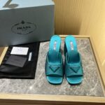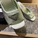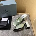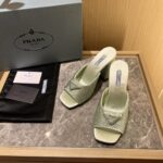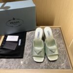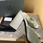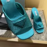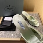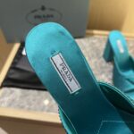 Prada Diamonds Silk And Satin Lambskin High Heel Slipper Mint Green