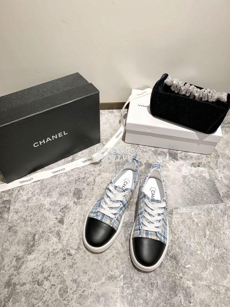 Chanel 2021 autumn and winter gold silk fabric Slip On shoes (gold silk blue)