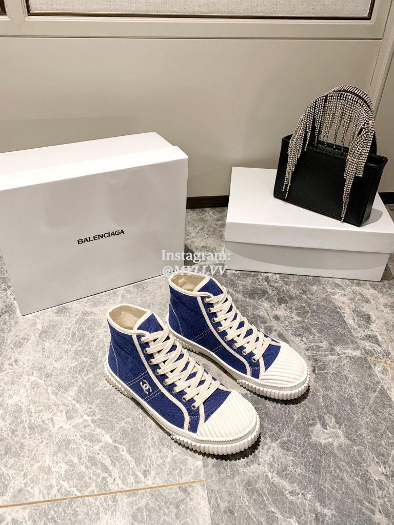 Top Quality Version:MYLLVV » Chanel 2021 early spring new casual biscuit canvas high-top shoes (Blue)