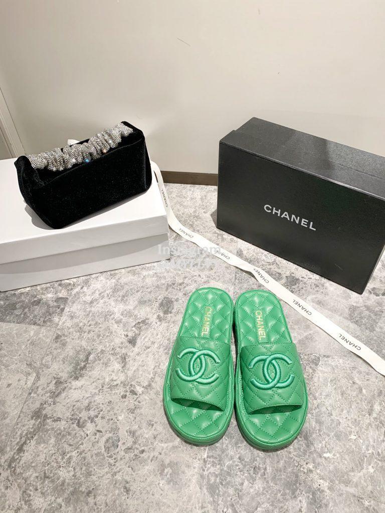 Top Quality Version:MYLLVV » CHANEL 2021 spring and summer new embroidered platform slippers (Green)