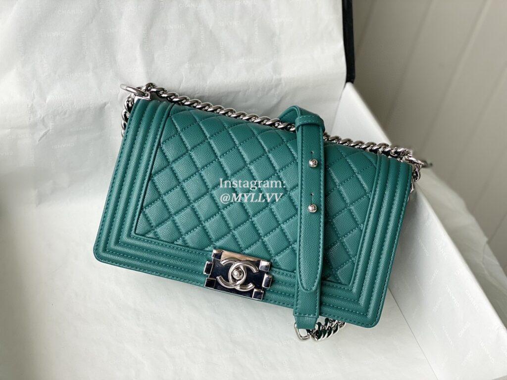 Top Quality Version:MYLLVV » Chanel Boy Diamond Plaid Caviar Cowhide Shoulder Bag Green With Silver 67086