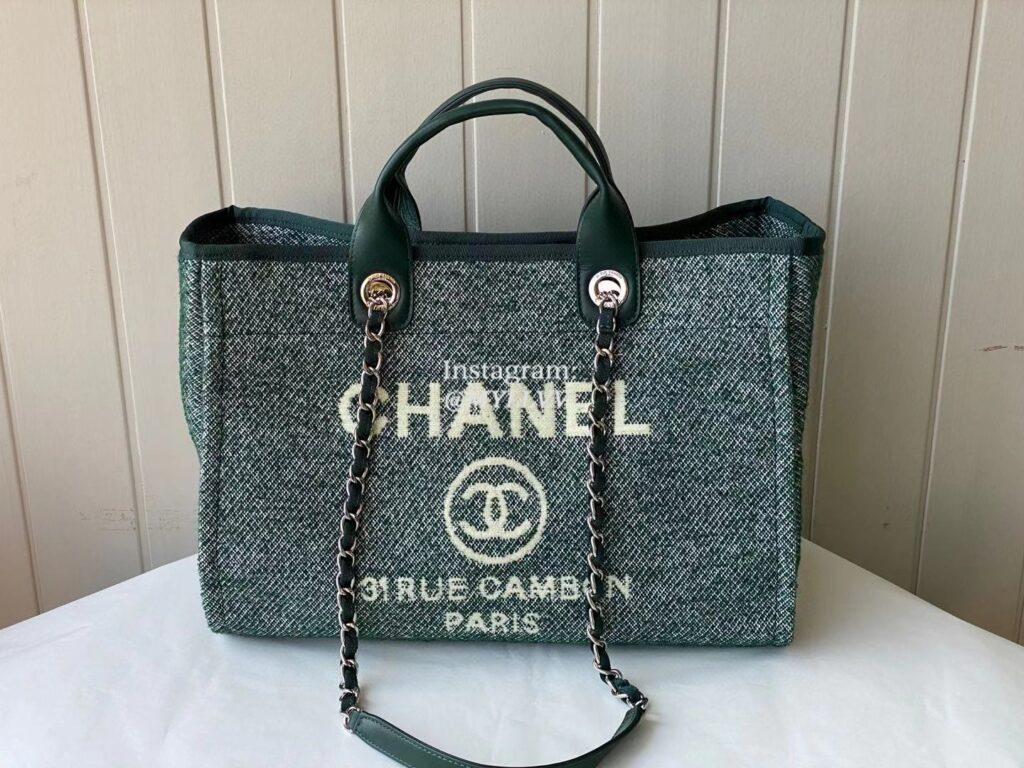 Top Quality Version:MYLLVV » Chanel Cabas Ete Woolen Large Beach Tote Bag Green With Sliver A066941