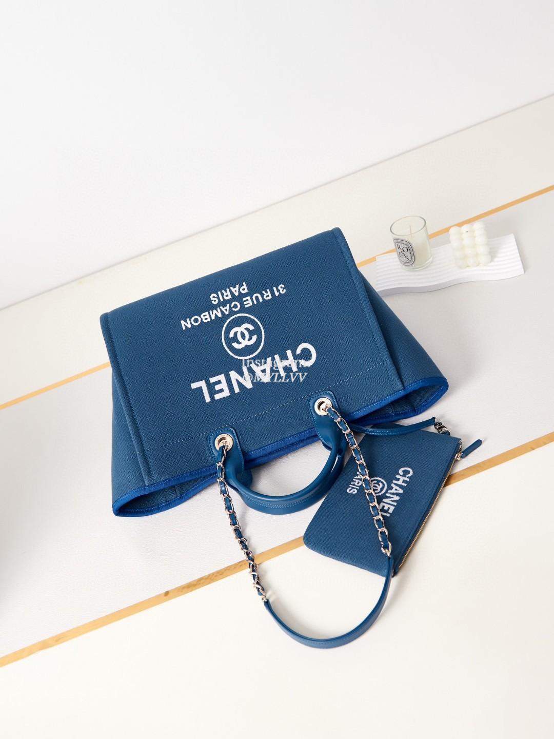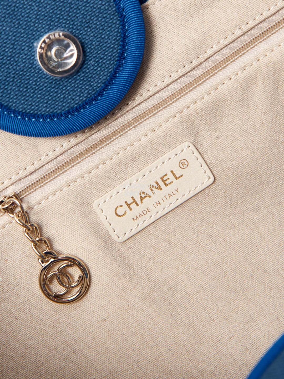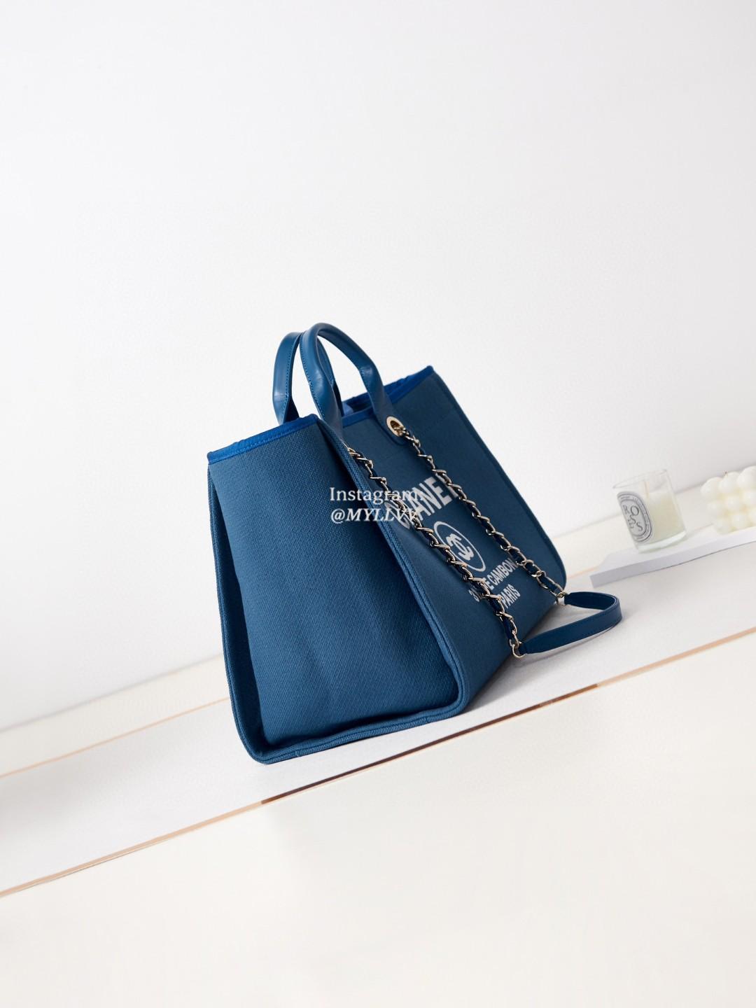 Top Quality Version:MYLLVV » Chanel Canvas Beach Bag Blue With Gold 66941