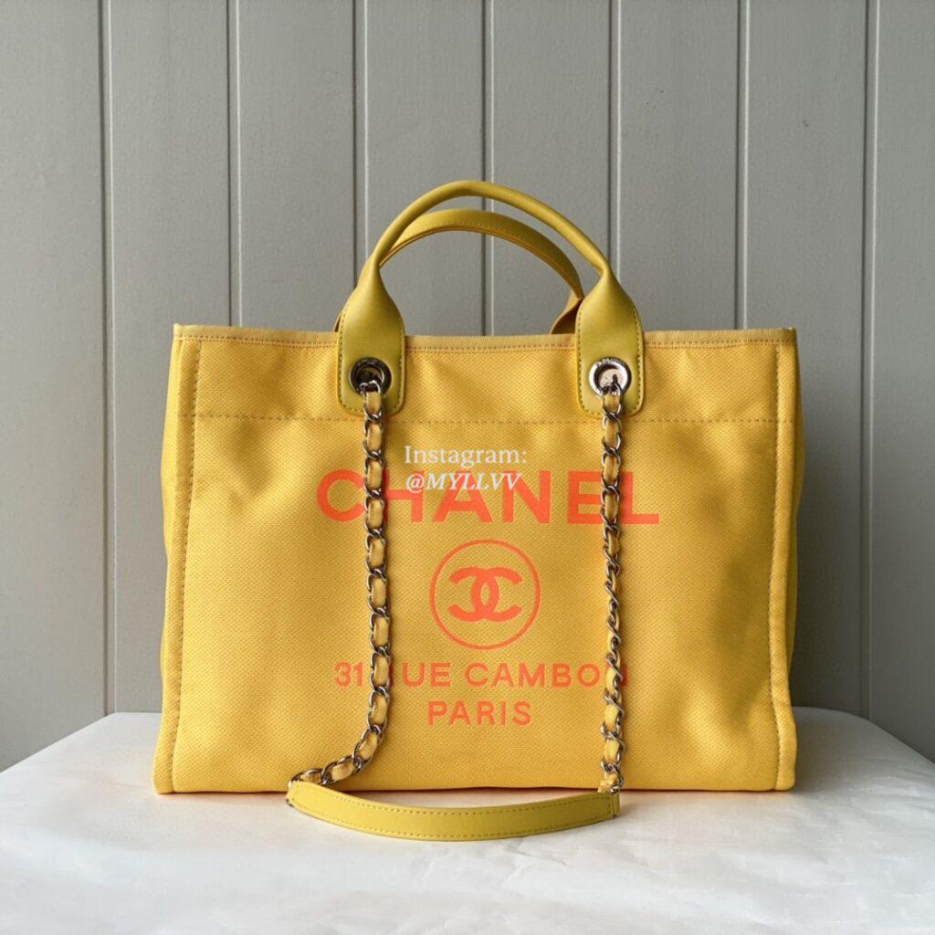 Top Quality Version:MYLLVV » Chanel Canvas Large Beach Bag Yellow Orange With Sliver AS66941