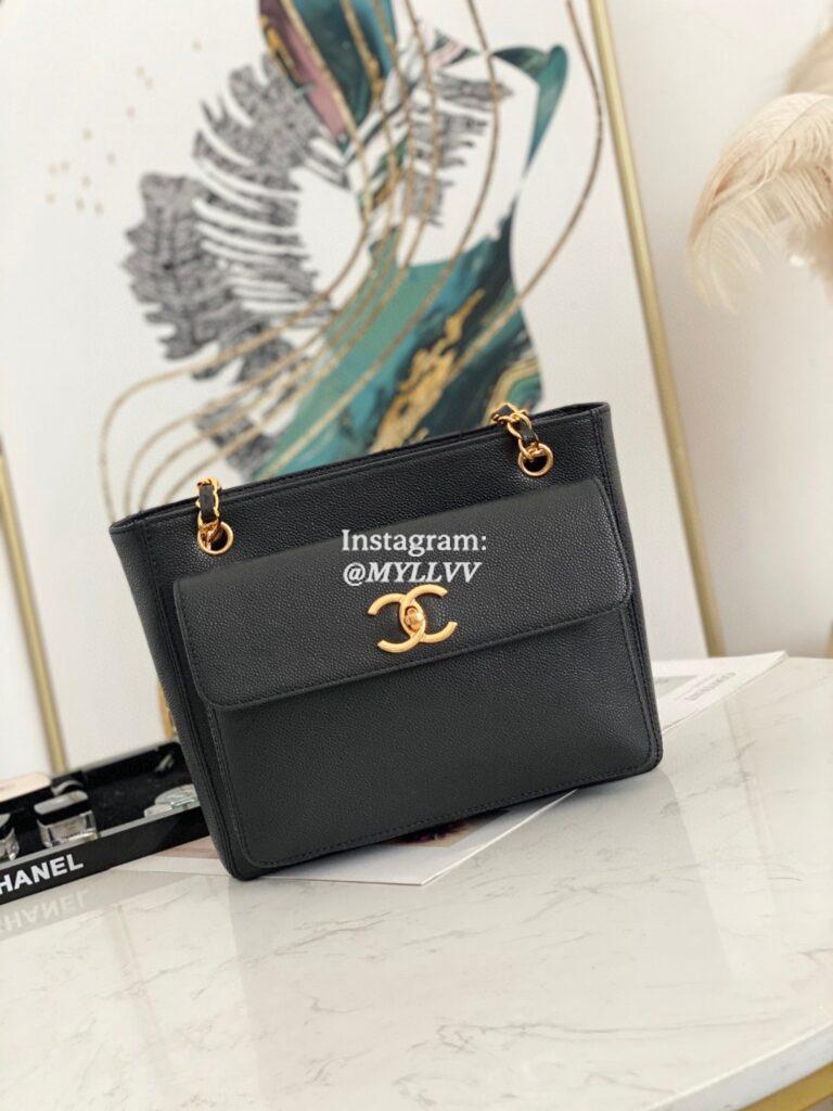 Top Quality Version:MYLLVV » Chanel Caviar Cowhide Vintage Shopping Bag Black With Gold 6706