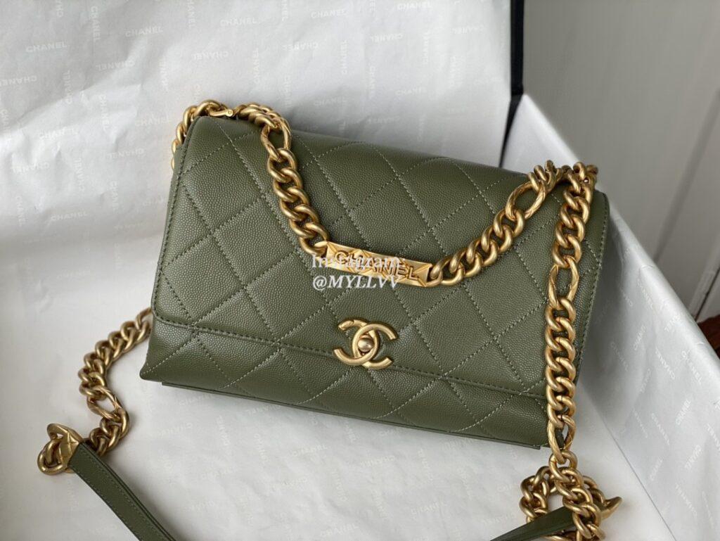 Top Quality Version:MYLLVV » Chanel Clamshell Packages Diamond Plaid Caviar Cowhide Chain Bag Large Green With Gold 2764