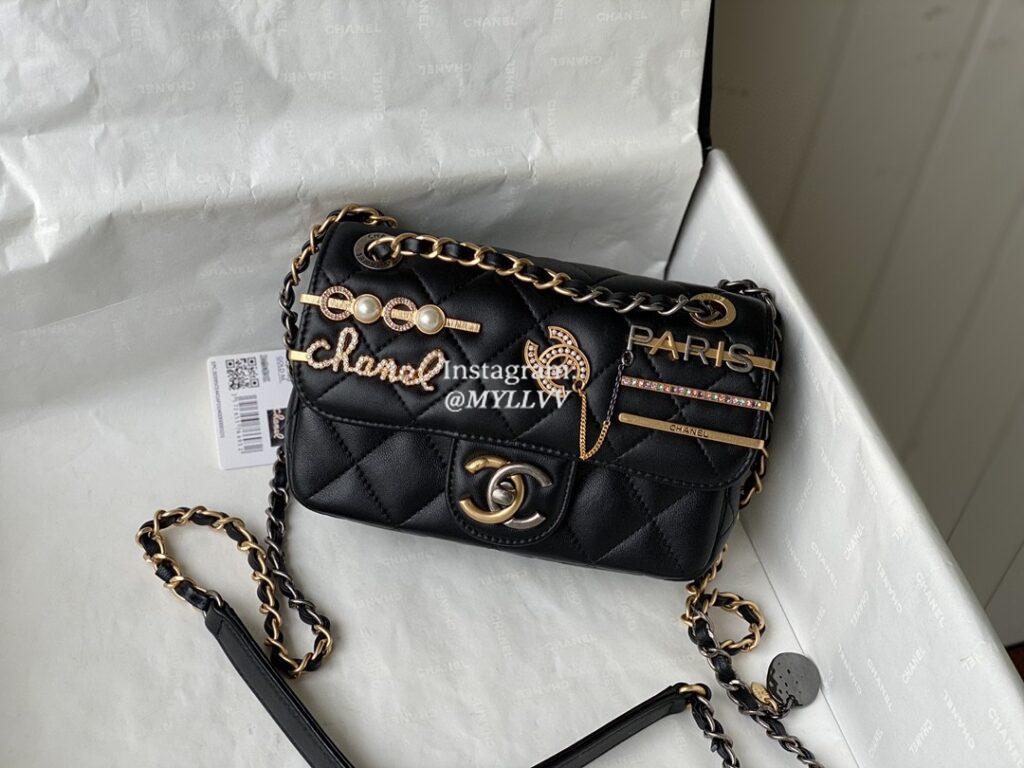 Top Quality Version:MYLLVV » Chanel Classic Flap Diamond Plaid Lambskin Shoulder Bag Black With Gold 2872