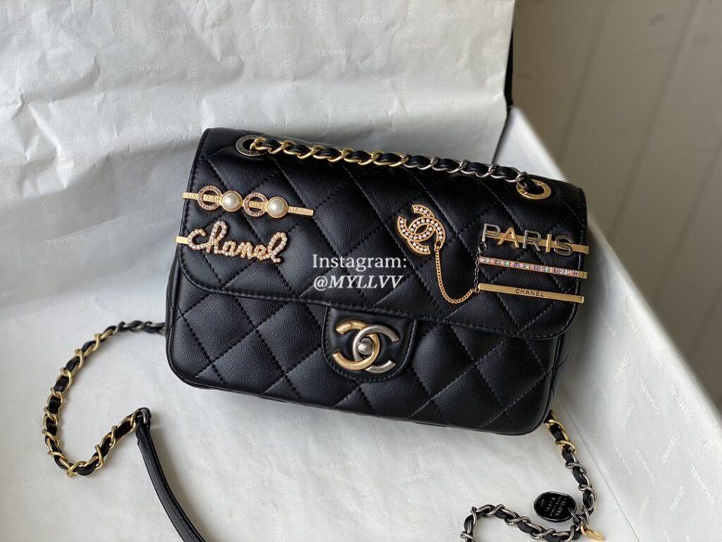 Top Quality Version:MYLLVV » Chanel Classic Flap Diamond Plaid Lambskin Shoulder Bag Black With Gold 2979