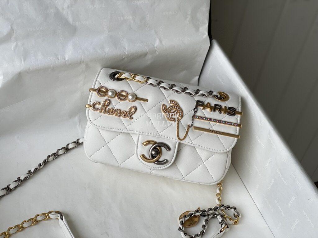 Top Quality Version:MYLLVV » Chanel Classic Flap Diamond Plaid Lambskin Shoulder Bag White With Gold 2872