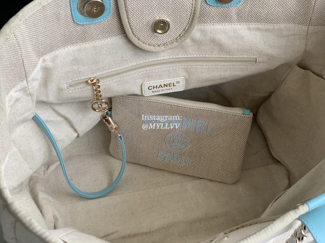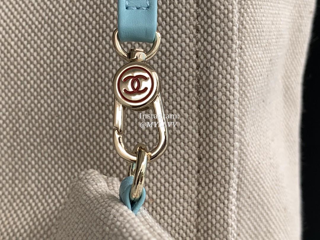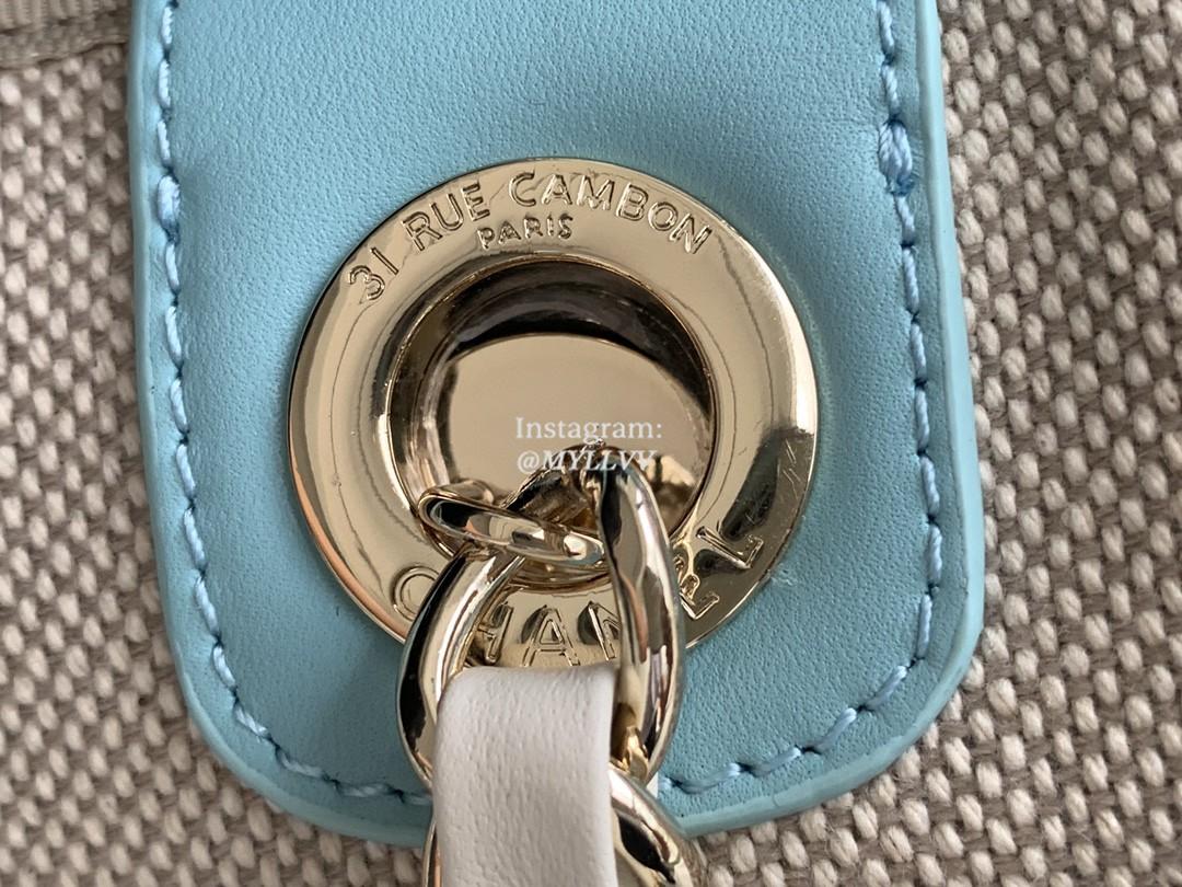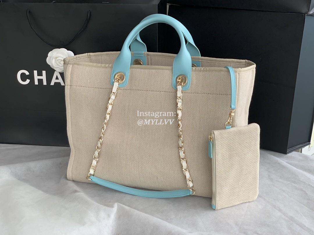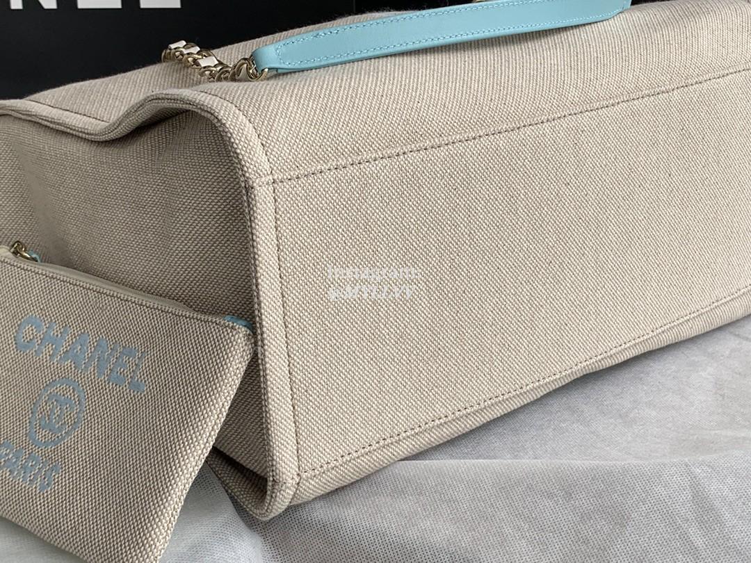 Dimension: 38.0 × 32.0 × 18.0 cm Top Quality Version:MYLLVV » Chanel Denim Cloth Shopping Bag Sky Blue With Gold 66941