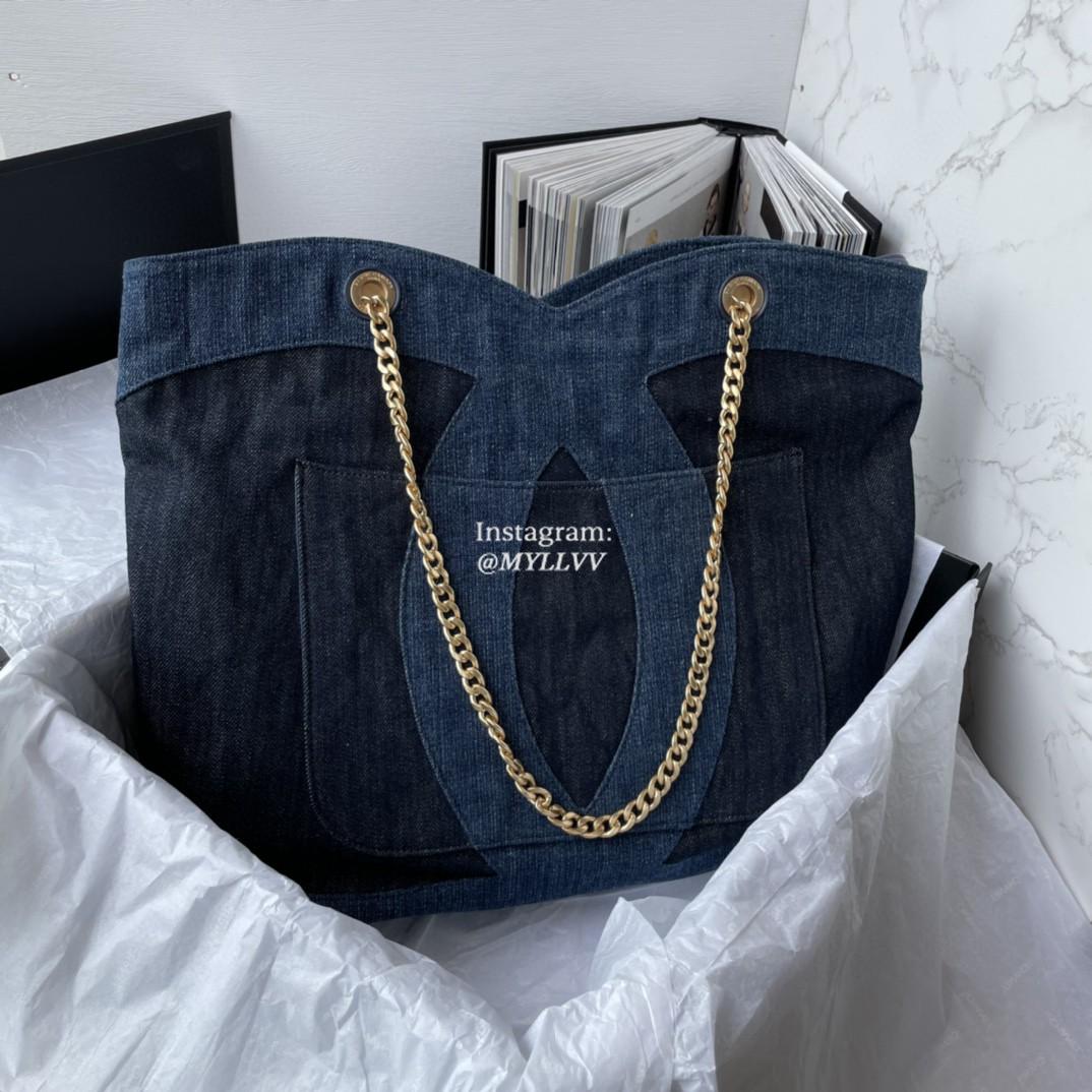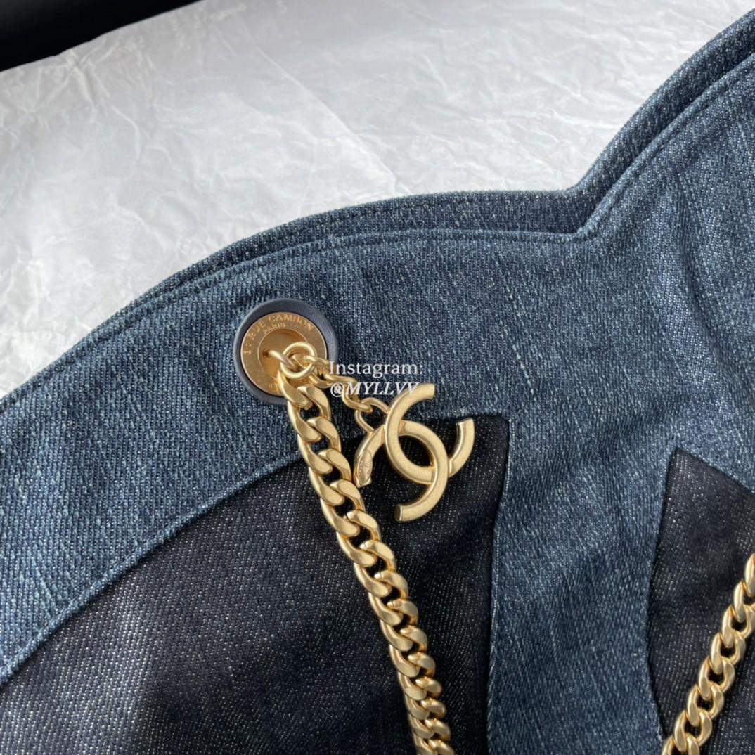 Dimension: 38.0 × 32.0 × 14.0 cm Top Quality Version:MYLLVV » Chanel Denim Handle Bag Blue With Gold AS3857