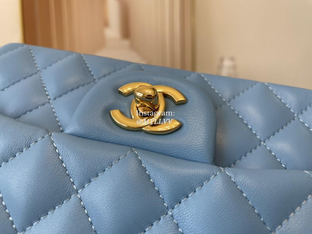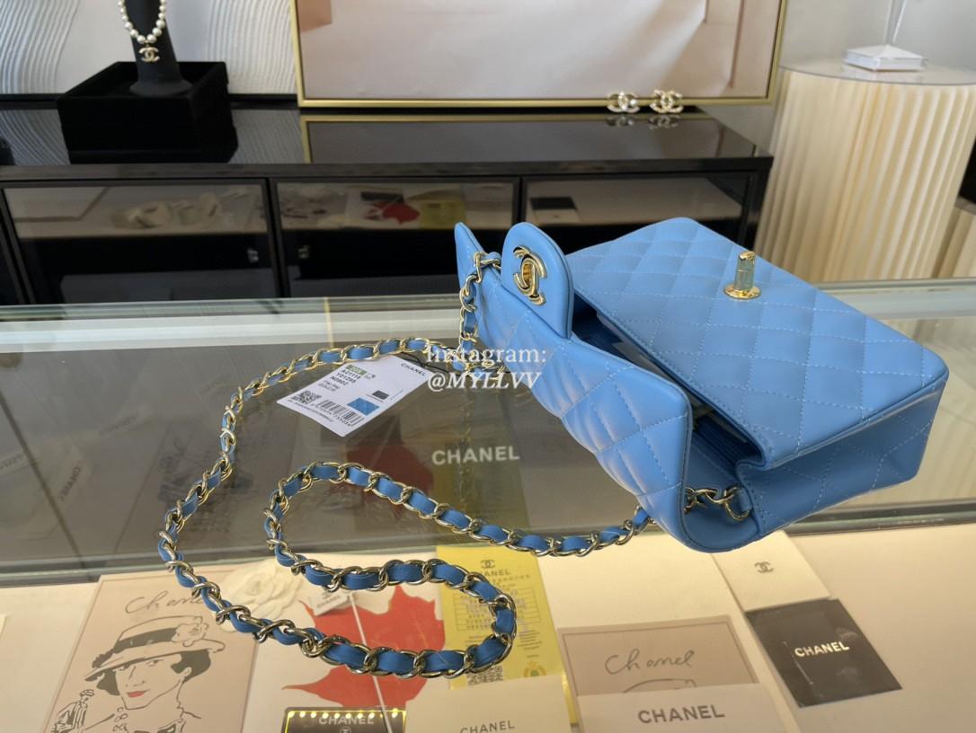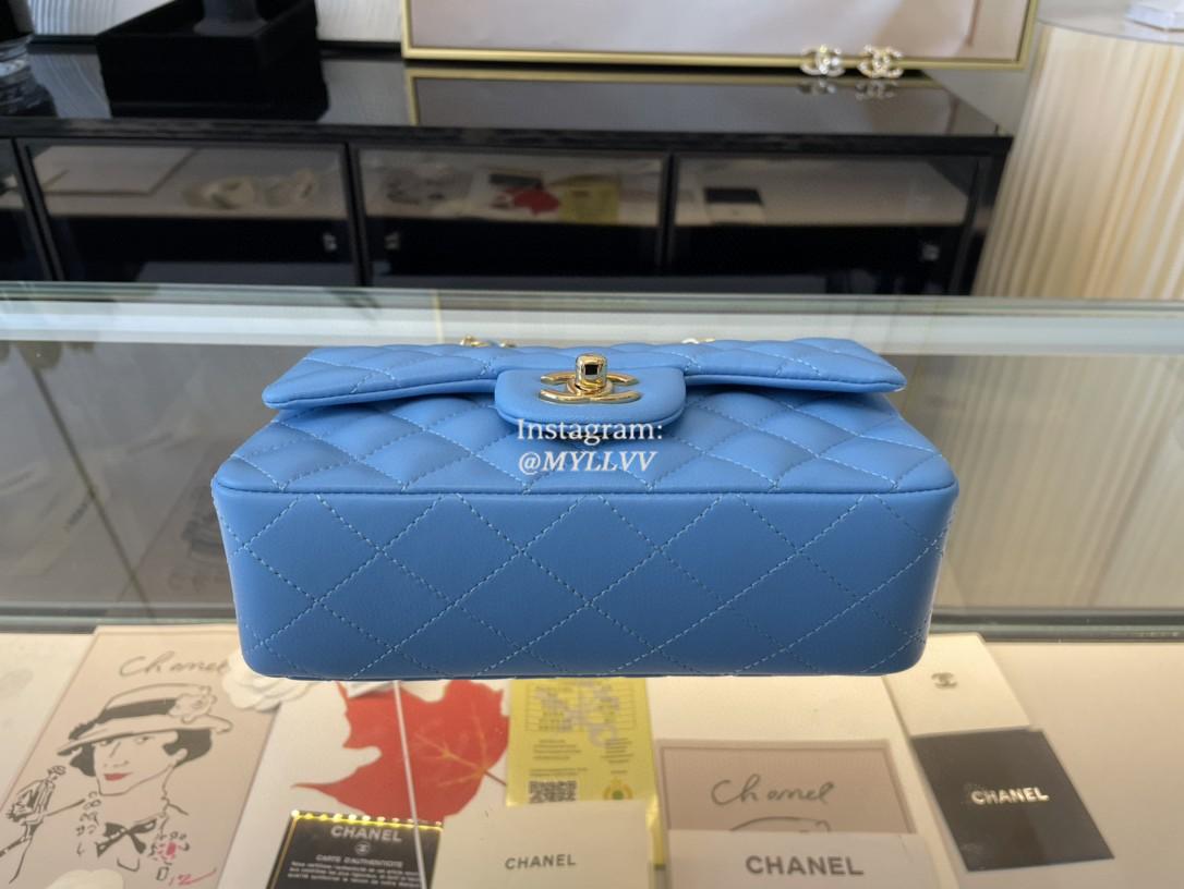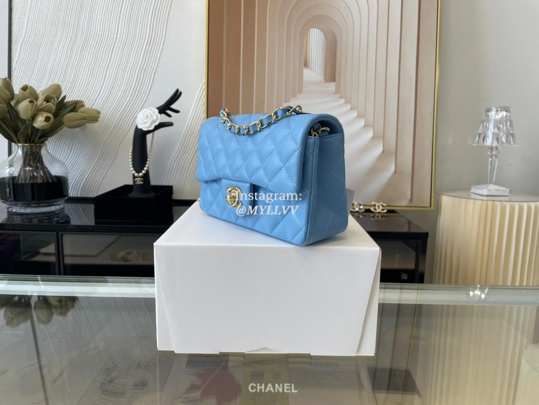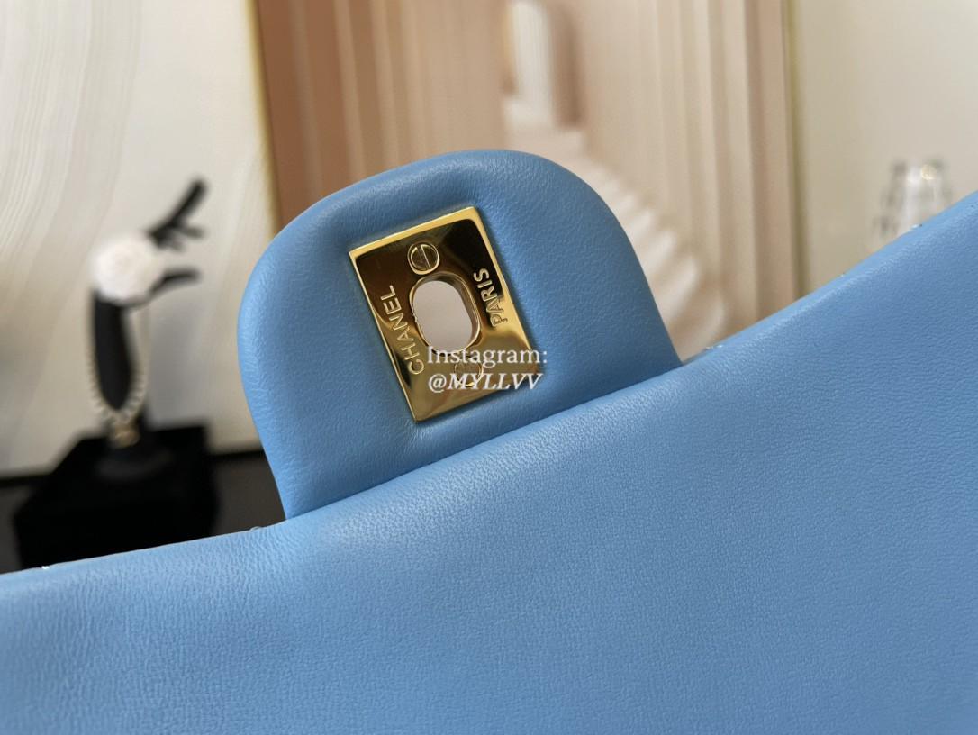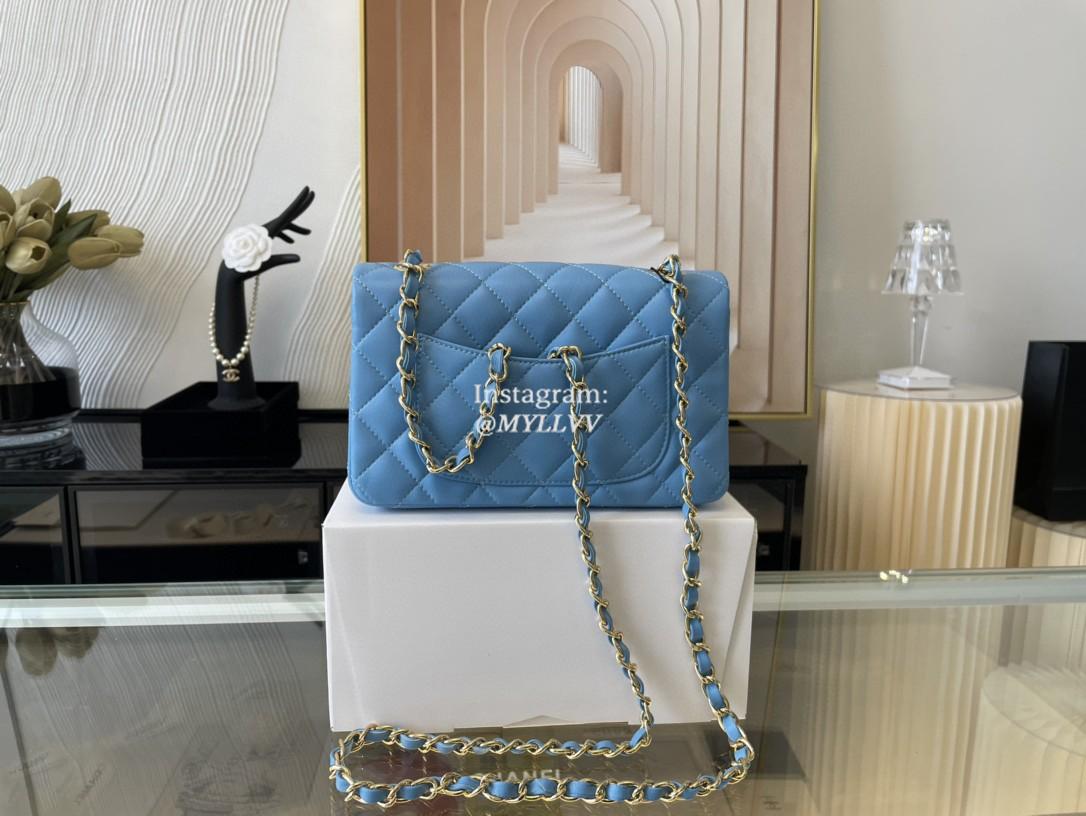 Dimension: 20.0 cm Top Quality Version:MYLLVV » Chanel Diamond Plaid Lambskin Classic Flap Bag Water Blue With Gold 1116