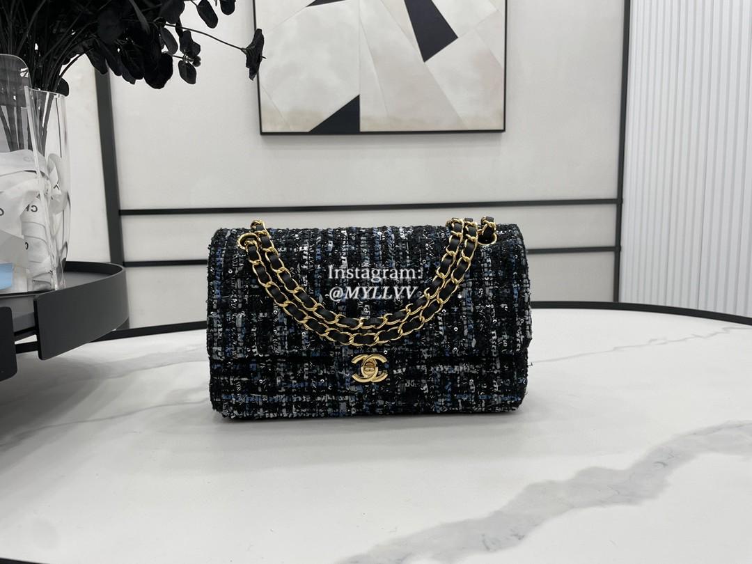 Dimension: 25.0 cm Top Quality Version:MYLLVV » Chanel Diamond Plaid Canvas Classic Flap Bag Black With Gold 01112