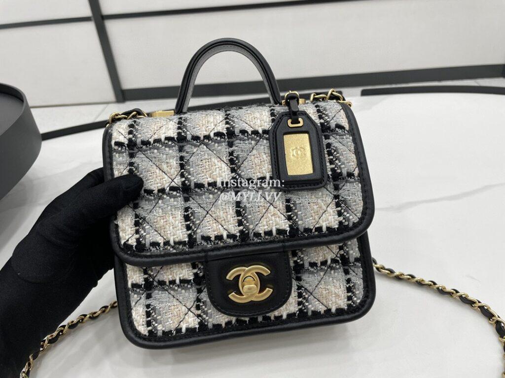 Top Quality Version:MYLLVV » Chanel Diamond Plaid Canvas Handle Flap Bag White With Gold AS3652
