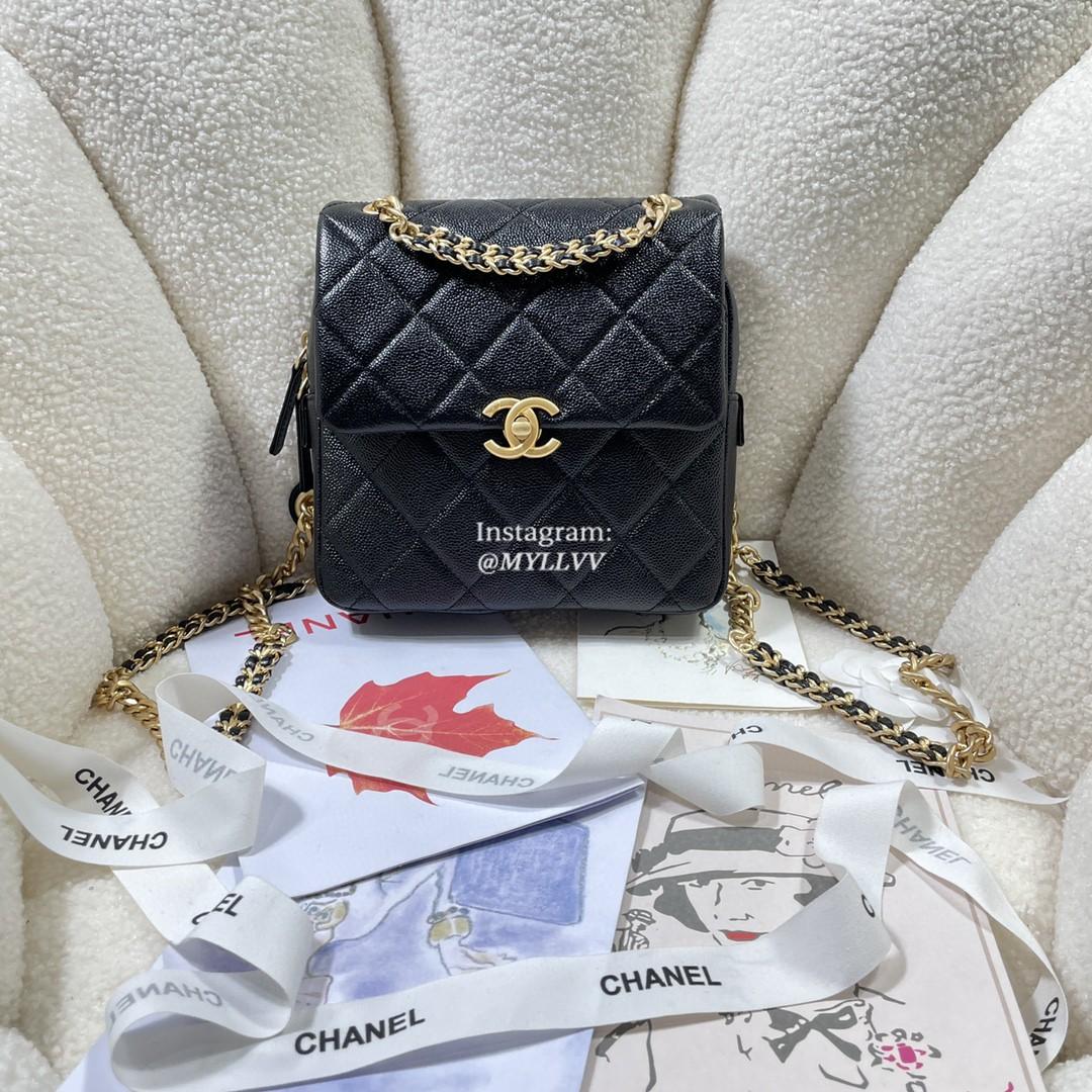 Top Quality Version:MYLLVV » Chanel Diamond Plaid Caviar Cowhide Backpack Black With Gold 3108