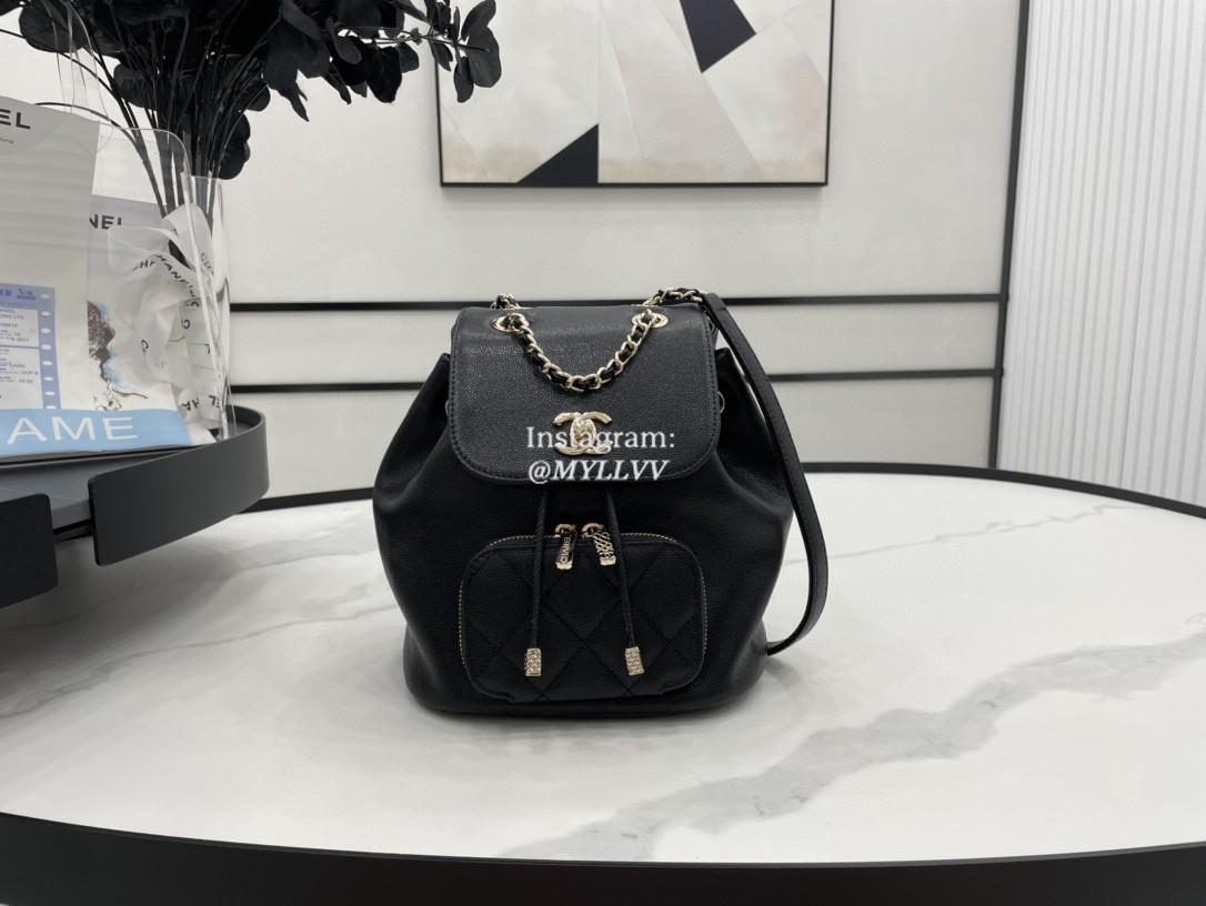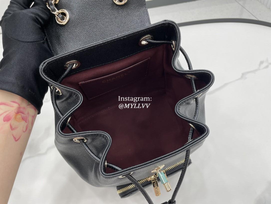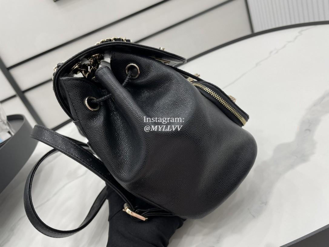 Top Quality Version:MYLLVV » Chanel Diamond Plaid Caviar Cowhide Backpack Black With Gold Small AS3530