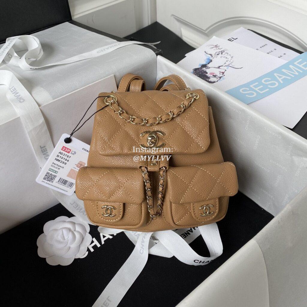 Top Quality Version:MYLLVV » Chanel Diamond Plaid Caviar Cowhide Backpack Caramel With Gold AS3787