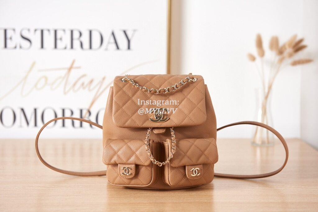Top Quality Version:MYLLVV » Chanel Diamond Plaid Caviar Cowhide Backpack Caramel With Gold AS3860