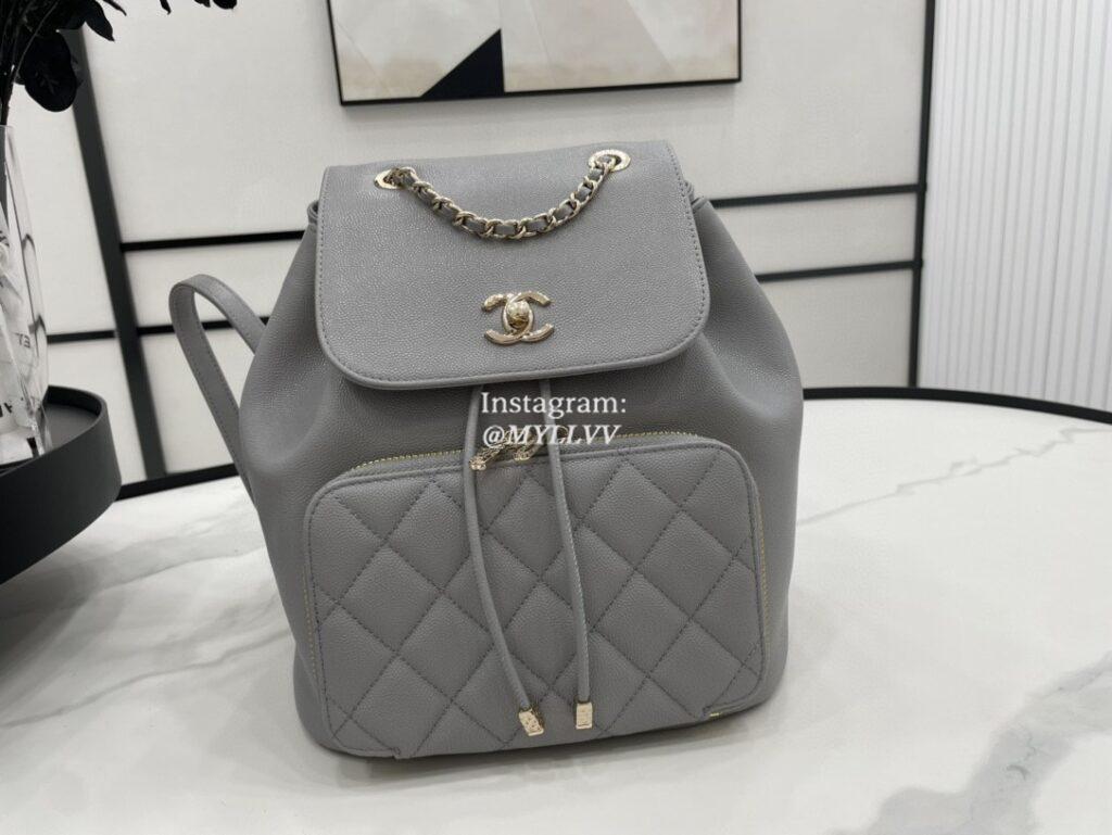 Top Quality Version:MYLLVV » Chanel Diamond Plaid Caviar Cowhide Backpack Grey With Gold Large AS3531