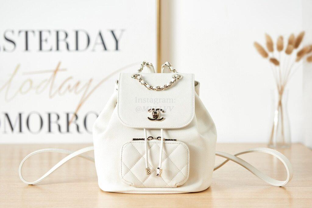 Top Quality Version:MYLLVV » Chanel Diamond Plaid Caviar Cowhide Backpack White With Gold AS3530
