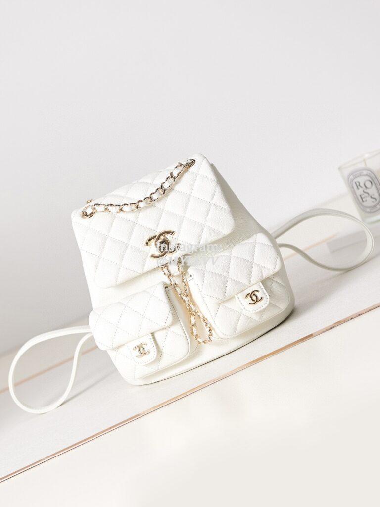 Top Quality Version:MYLLVV » Chanel Diamond Plaid Caviar Cowhide Backpack White With Gold AS3860