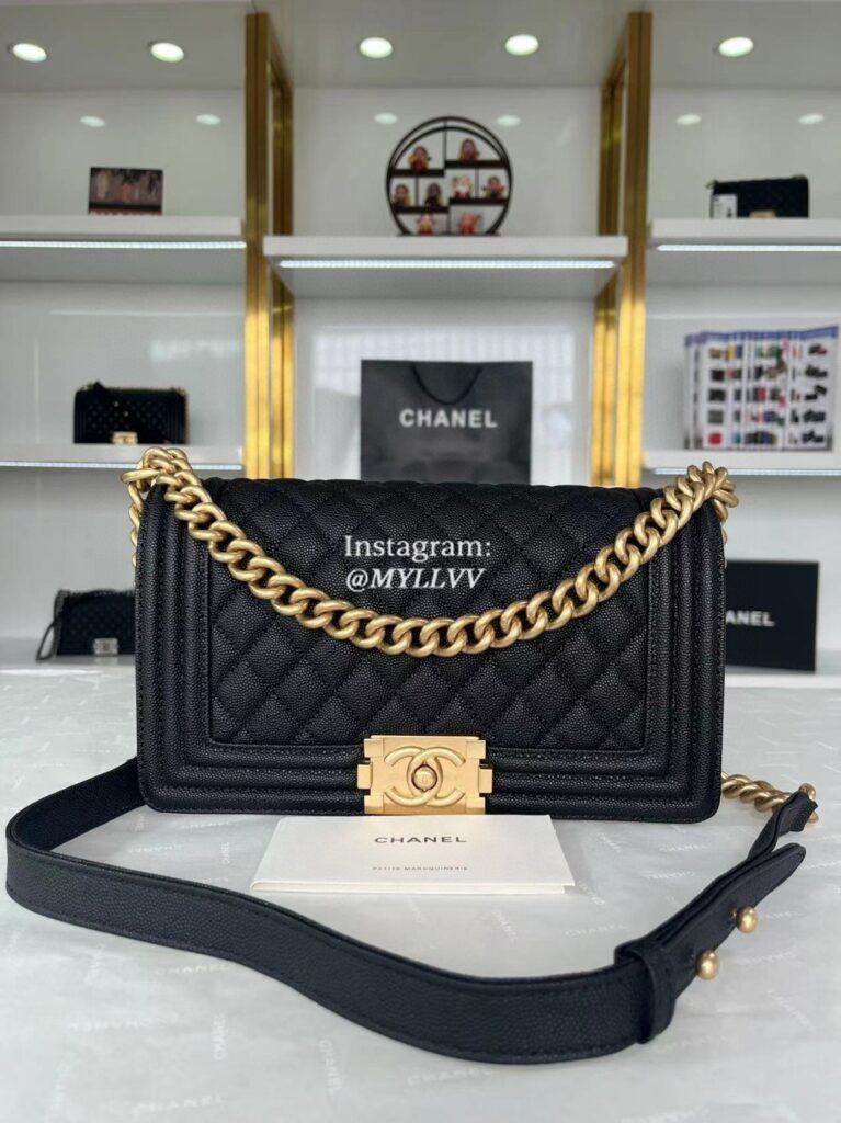 Top Quality Version:MYLLVV » Chanel Diamond Plaid Caviar Cowhide BOY Handle Flap Bag Black With Gold A67086
