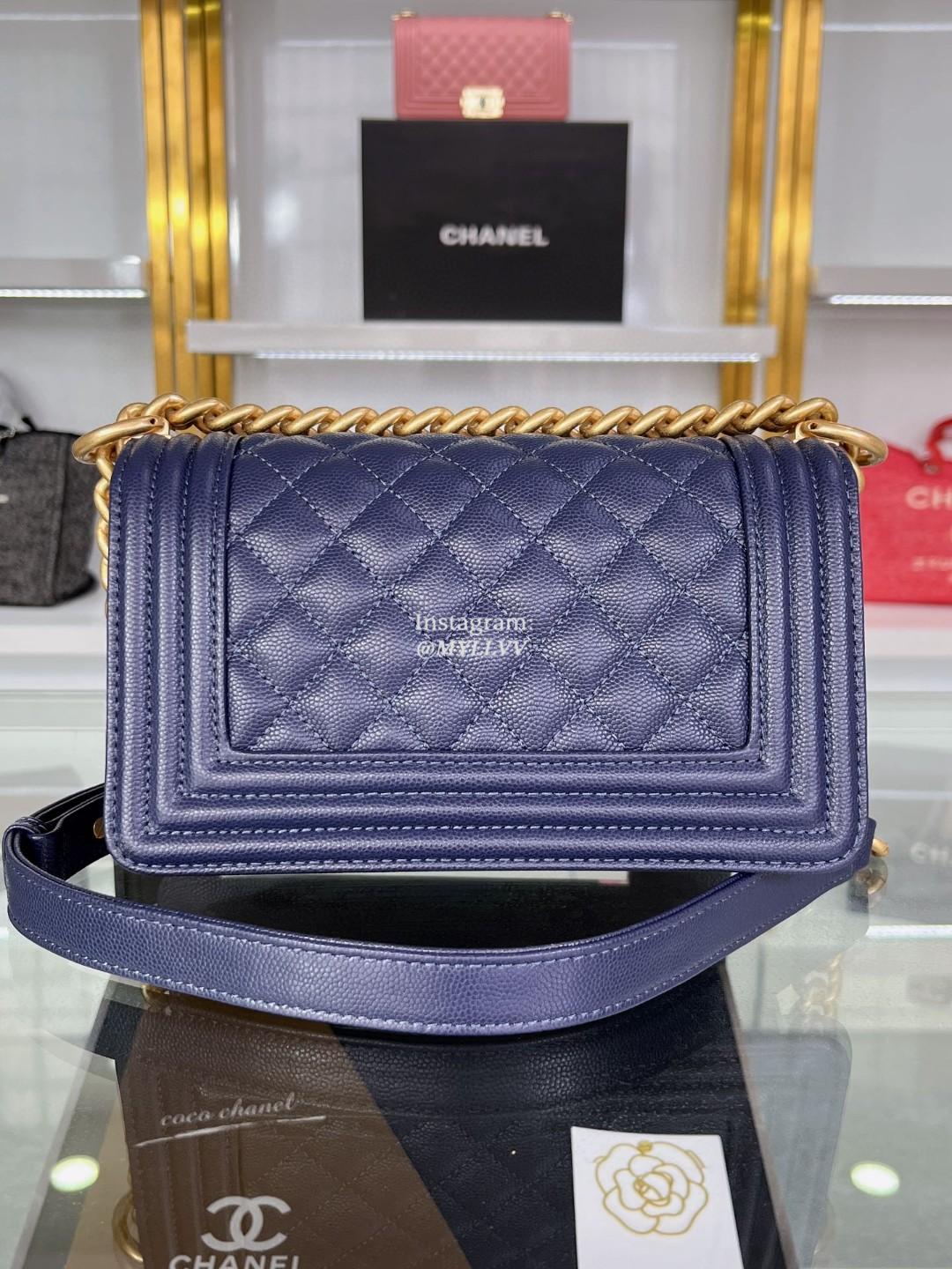 Top Quality Version:MYLLVV » Chanel Diamond Plaid Caviar Cowhide BOY Handle Flap Bag Royal Blue With Gold A67085