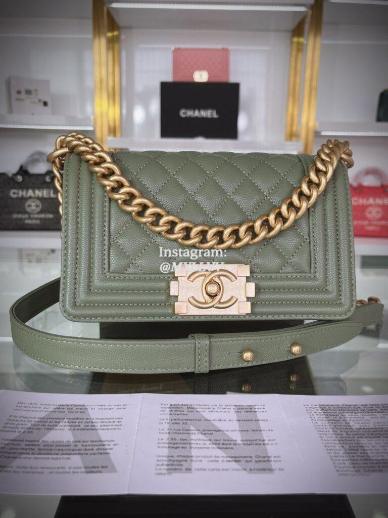 Top Quality Version:MYLLVV » Chanel Diamond Plaid Caviar Cowhide BOY Handle Flap Bag Dark Green With Gold A67085