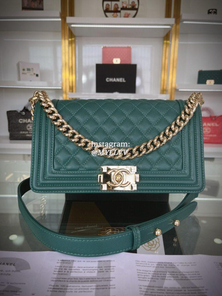 Top Quality Version:MYLLVV » Chanel Diamond Plaid Caviar Cowhide BOY Handle Flap Bag Dark Green With Gold A67086