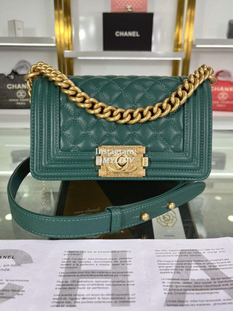 Top Quality Version:MYLLVV » Chanel Diamond Plaid Caviar Cowhide BOY Handle Flap Bag Green With Gold A67085