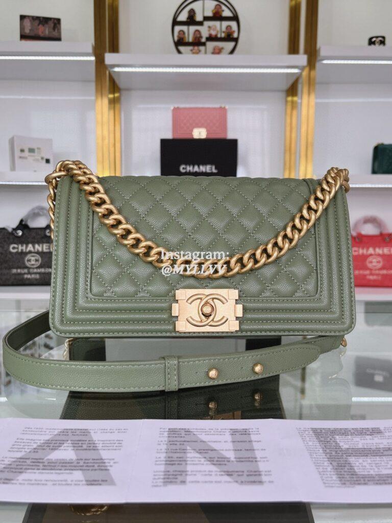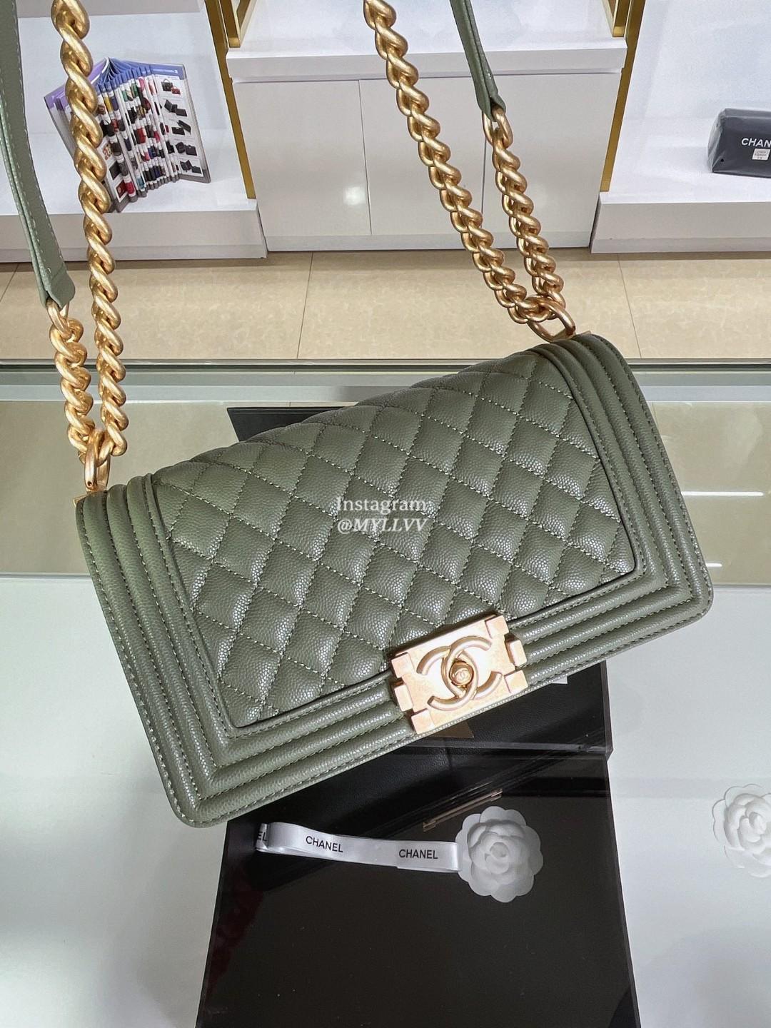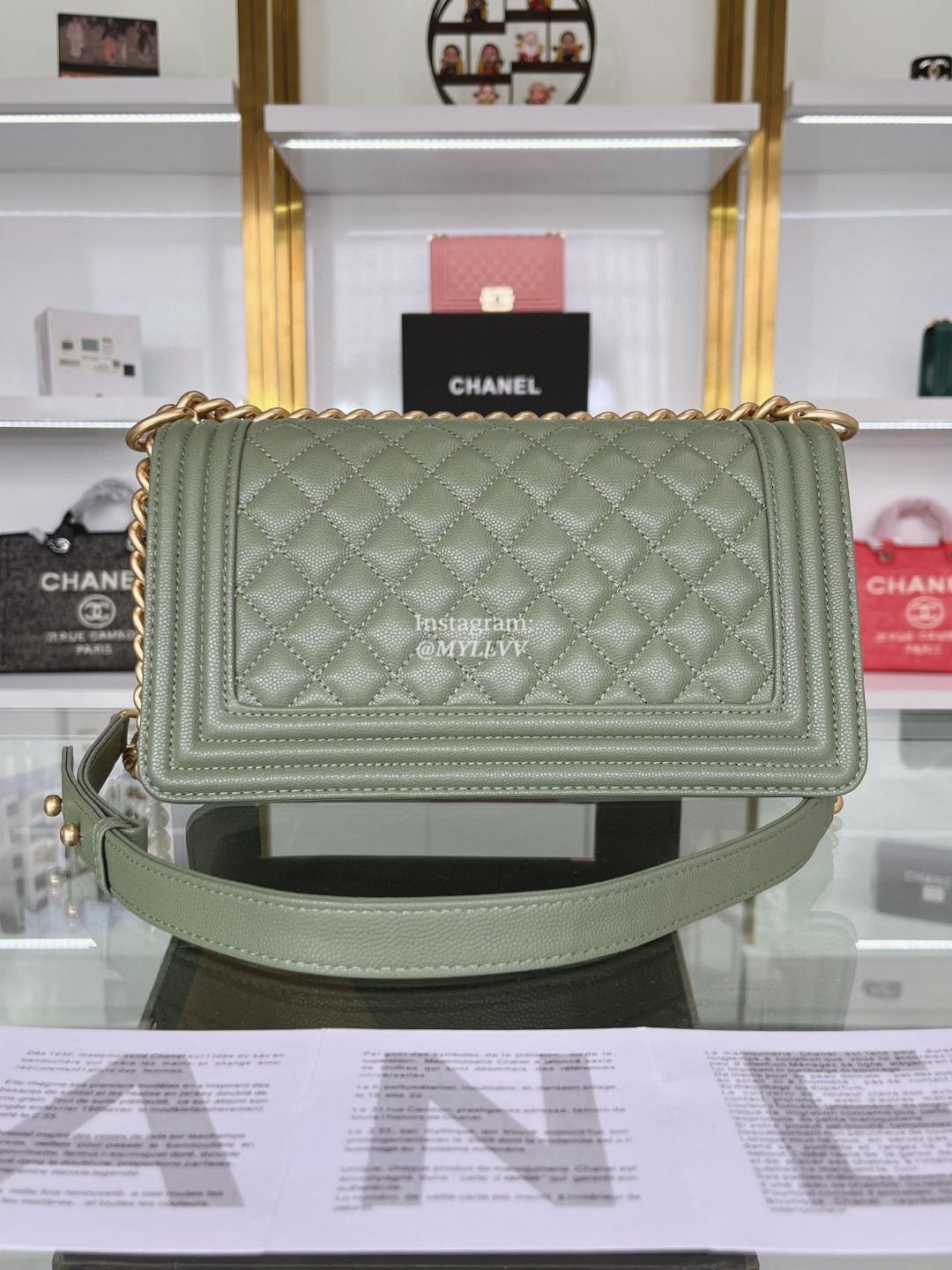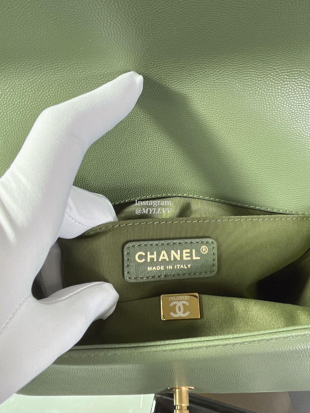 Top Quality Version:MYLLVV » Chanel Diamond Plaid Caviar Cowhide BOY Handle Flap Bag Green With Gold A67086