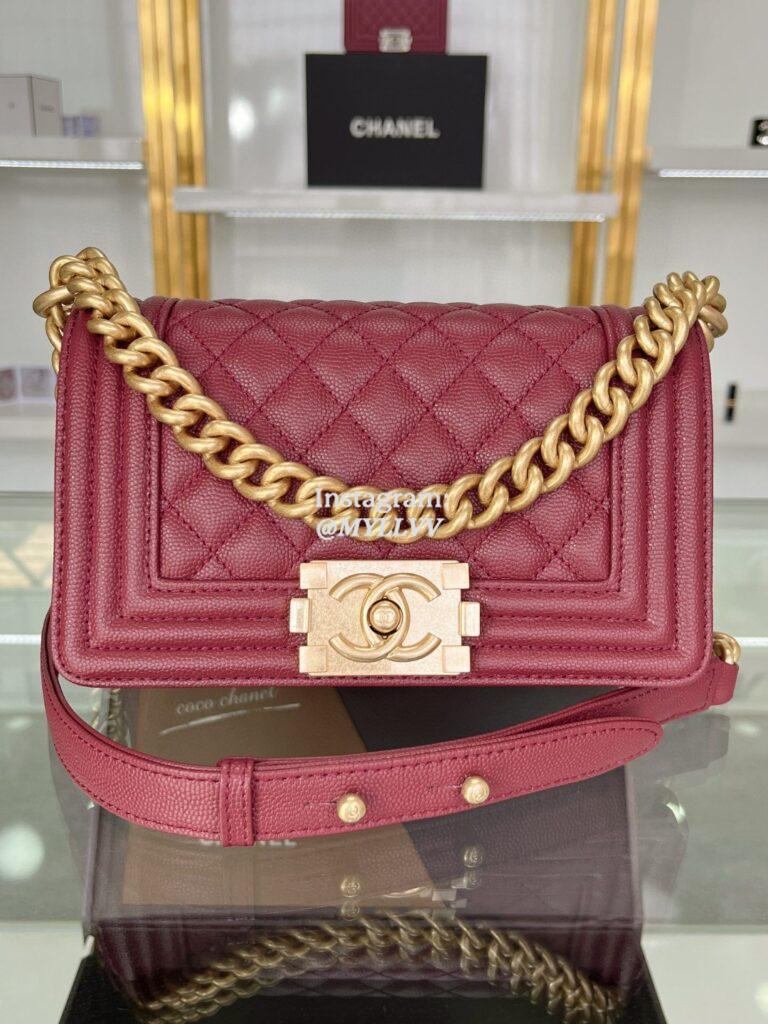 Top Quality Version:MYLLVV » Chanel Diamond Plaid Caviar Cowhide BOY Handle Flap Bag Wine Red With Gold A67085