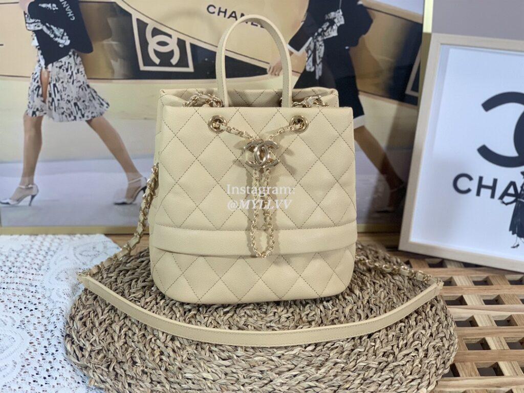 Top Quality Version:MYLLVV » Chanel Diamond Plaid Caviar Cowhide Bucket Bag Apricot With Gold AS0894