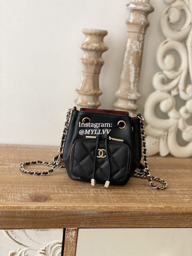 Top Quality Version:MYLLVV » Chanel Diamond Plaid Caviar Cowhide Bucket Bag Black With Gold 2913
