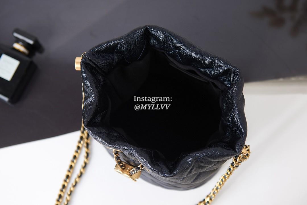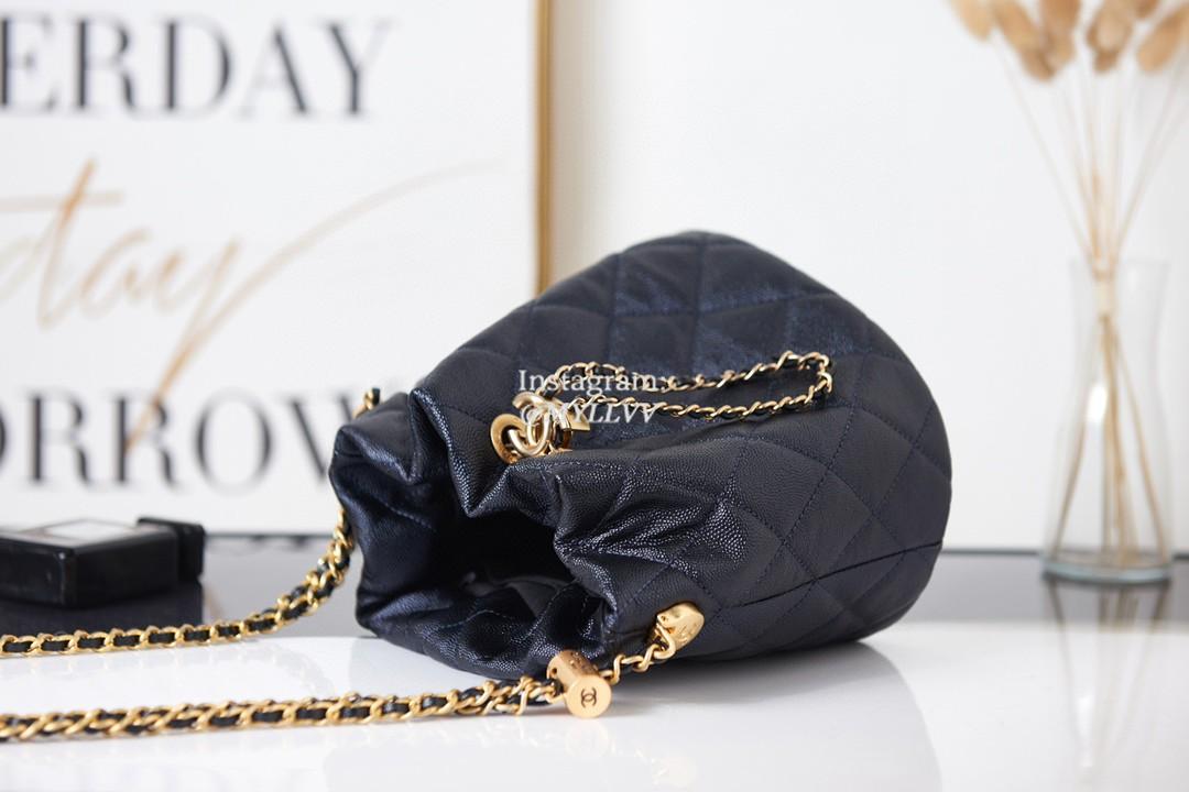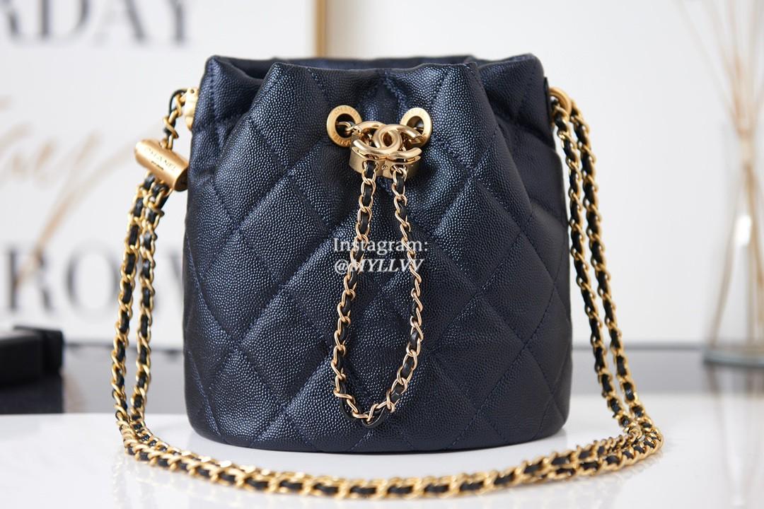 Top Quality Version:MYLLVV » Chanel Diamond Plaid Caviar Cowhide Bucket Bag Black With Gold AS2859