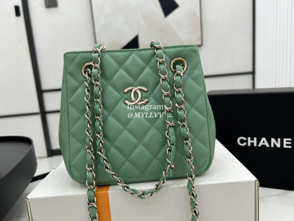 Top Quality Version:MYLLVV » Chanel Diamond Plaid Caviar Cowhide Bucket Bag Green With Gold AS3176