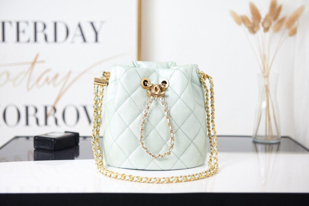 Top Quality Version:MYLLVV » Chanel Diamond Plaid Caviar Cowhide Bucket Bag Light Green With Gold AS2859