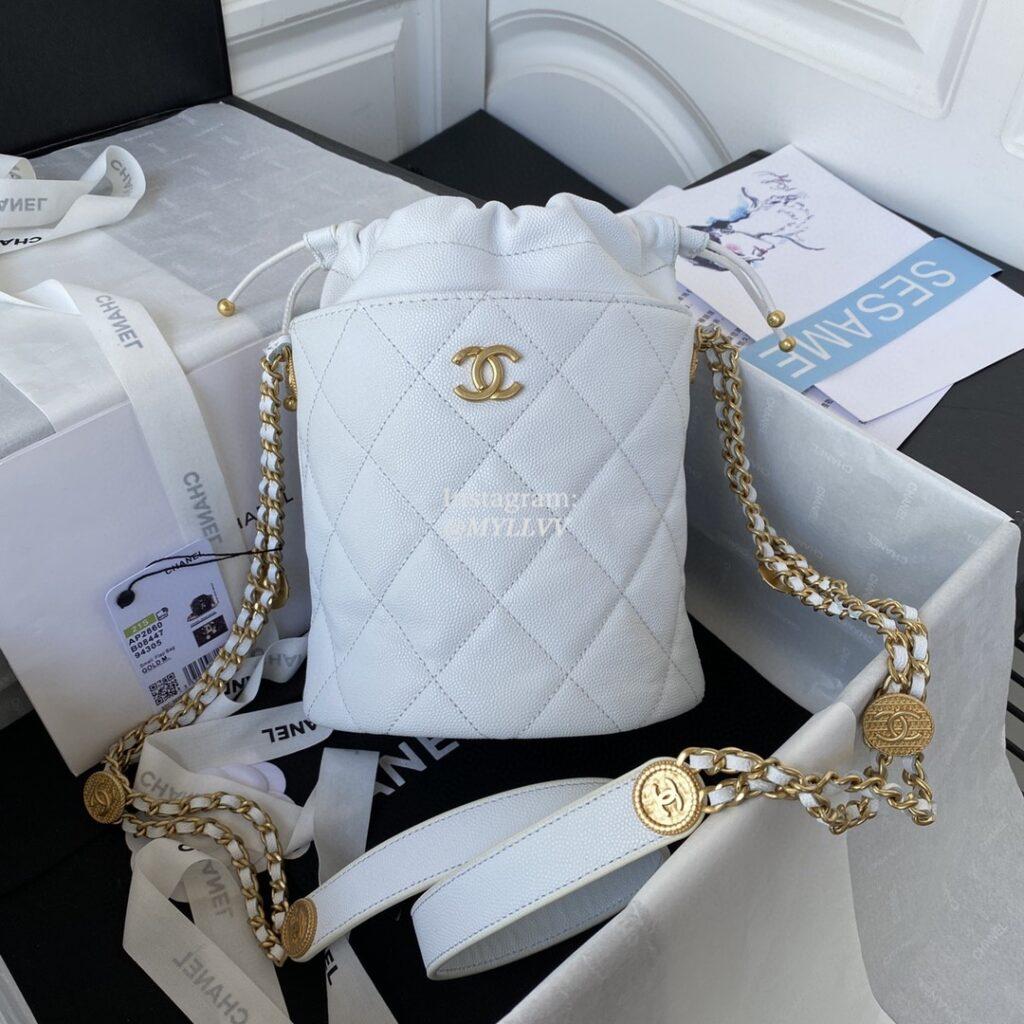 Top Quality Version:MYLLVV » Chanel Diamond Plaid Caviar Cowhide Bucket Bag White With Gold AP2861