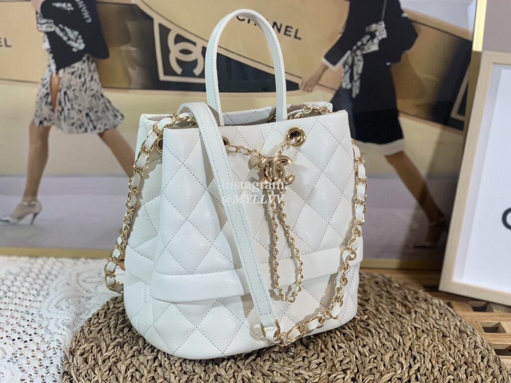 Top Quality Version:MYLLVV » Chanel Diamond Plaid Caviar Cowhide Bucket Bag White With Gold AS0894