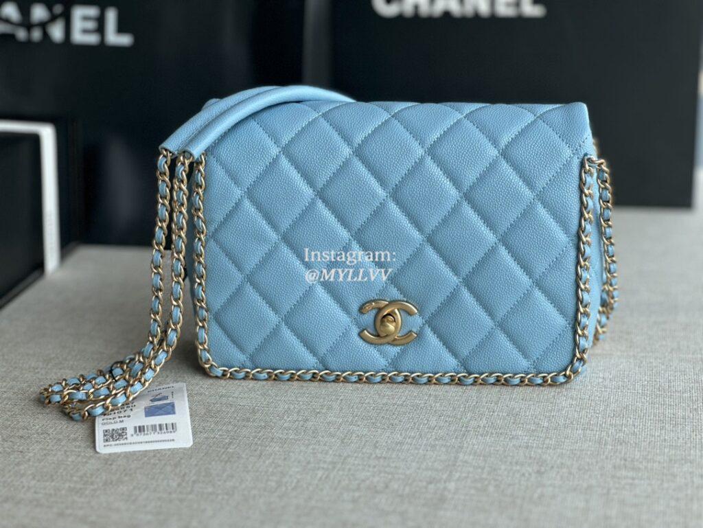 Top Quality Version:MYLLVV » Chanel Diamond Plaid Caviar Cowhide Chain Flap Bag Sky Blue With Gold A3467