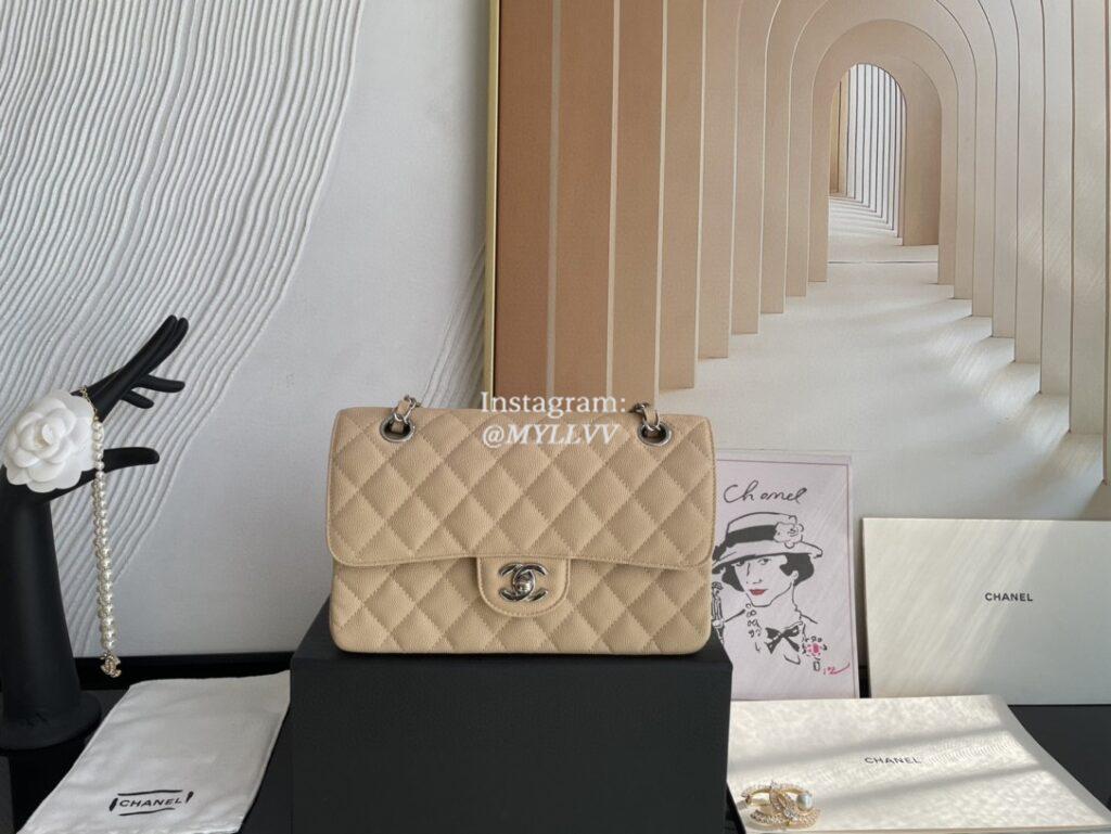 Top Quality Version:MYLLVV » Chanel Diamond Plaid Caviar Cowhide Classic Flap Bag Apricot With Sliver 1118