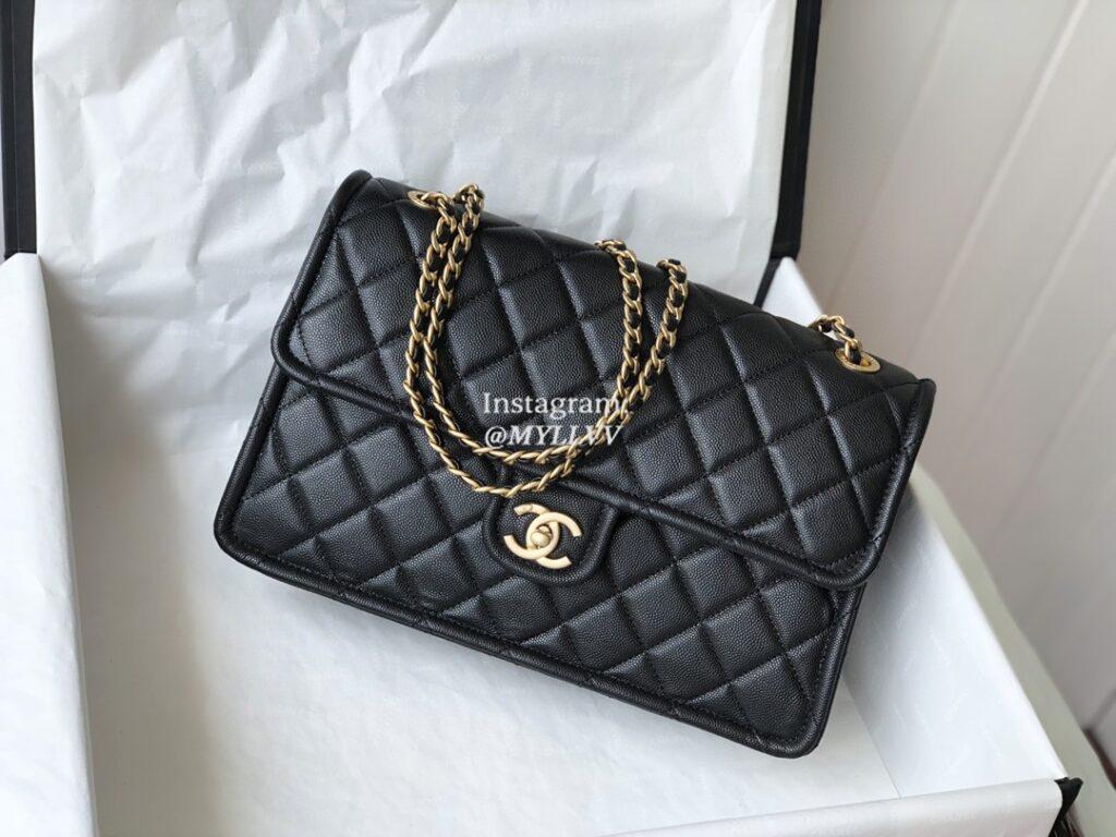 Top Quality Version:MYLLVV » Chanel Diamond Plaid Caviar Cowhide Classic Flap Bag Black With Gold AS2358