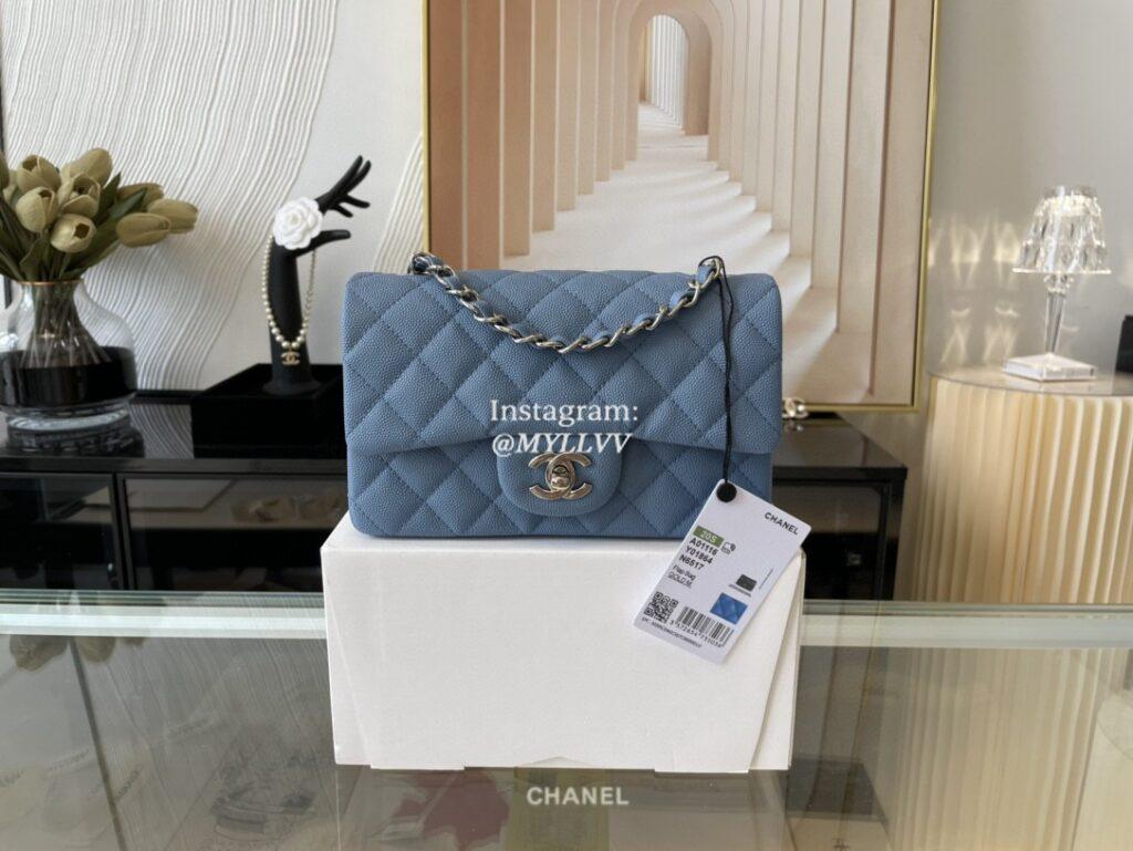 Top Quality Version:MYLLVV » Chanel Diamond Plaid Caviar Cowhide Classic Flap Bag Blue With Silver 01116