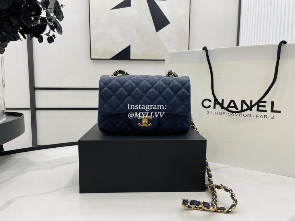 Top Quality Version:MYLLVV » Chanel Diamond Plaid Caviar Cowhide Classic Flap Bag Dark Blue With Gold 01116