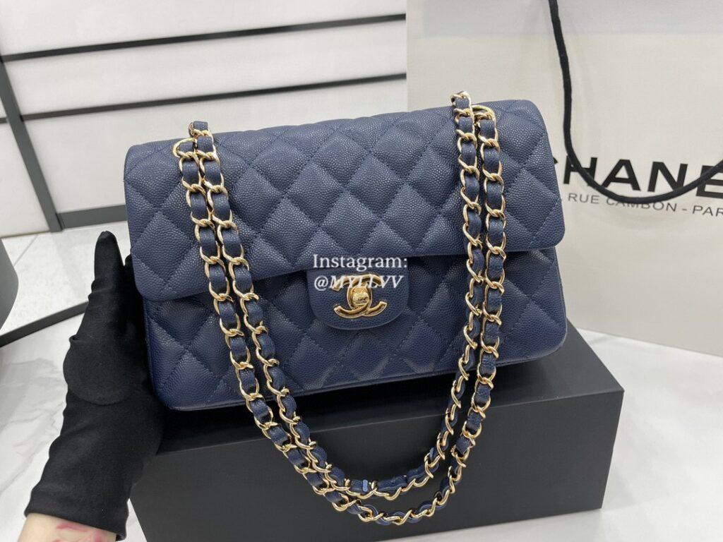 Top Quality Version:MYLLVV » Chanel Diamond Plaid Caviar Cowhide Classic Flap Bag Dark Blue With Gold 01118